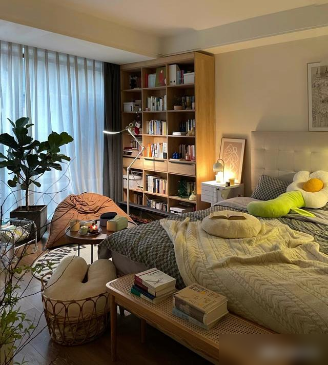 书柜书桌放卧室,听着文艺,实际头重脚轻很别扭,板材污染大,空间挤得转不开身。